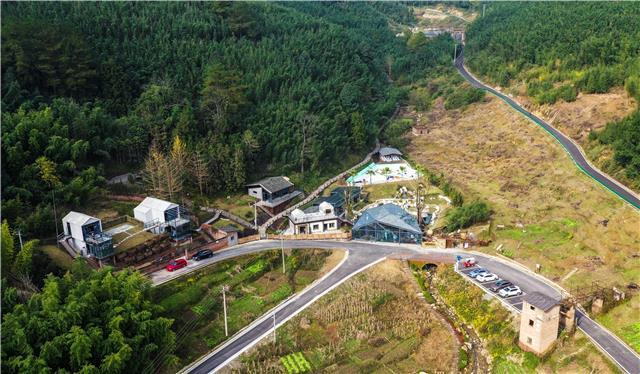2021年11月23日,竹山镇猎神村,矿咖民宿坐落在群山环抱之间,四周竹海苍翠。记者 熊伟 摄